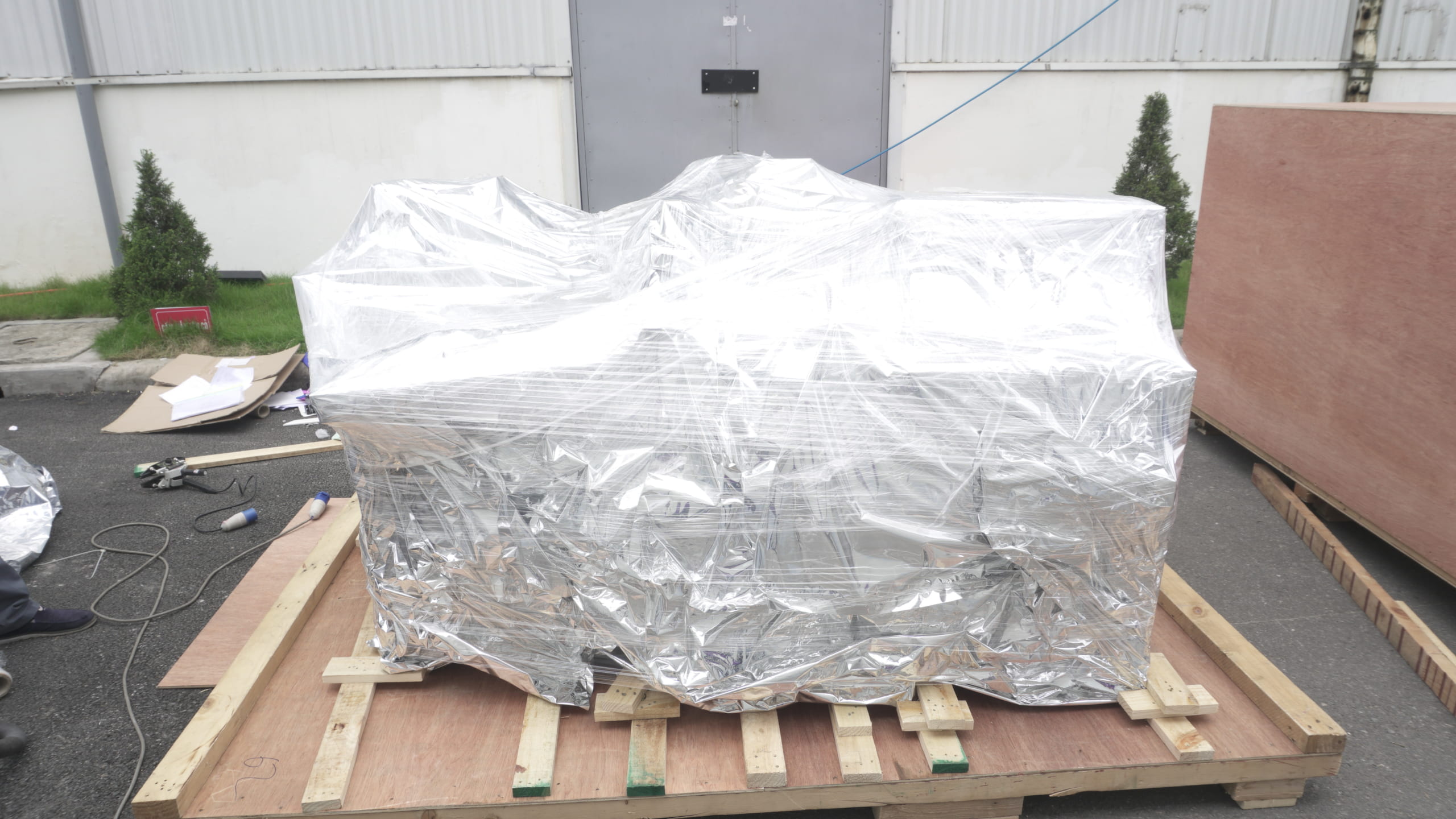- Bọc nilon bạc cho máy móc và tiến hành hút chân không.